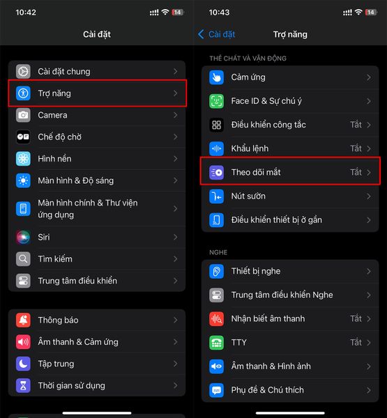 - Chọn Theo Dõi Mắt: Tìm và nhấn vào mục Theo dõi mắt để kích hoạt.