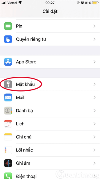 Bước 1: Truy cập vào mục Mật khẩu